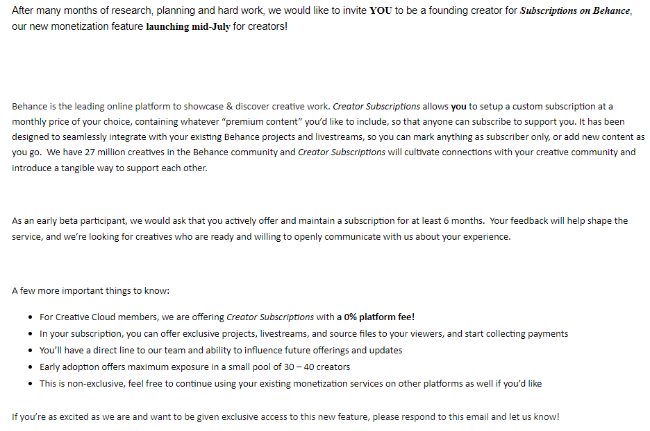 Behance Subscriptions Early Access