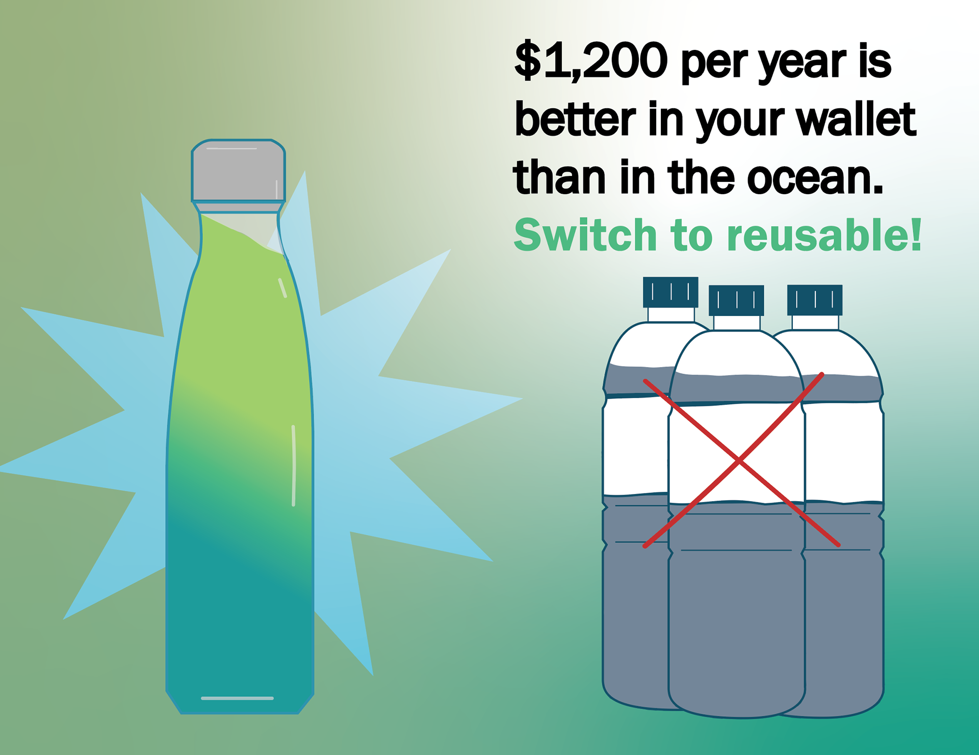 Vector images are accompanied by text. Tells the viewer the impact plastic has on our environment.