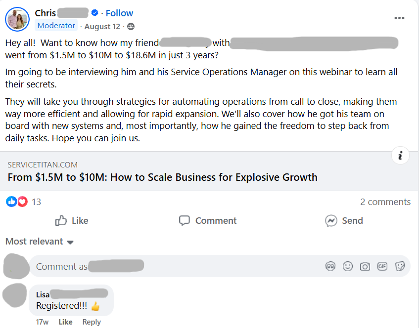 ServiceTitan: ~165K+ organic and 12K+ community members